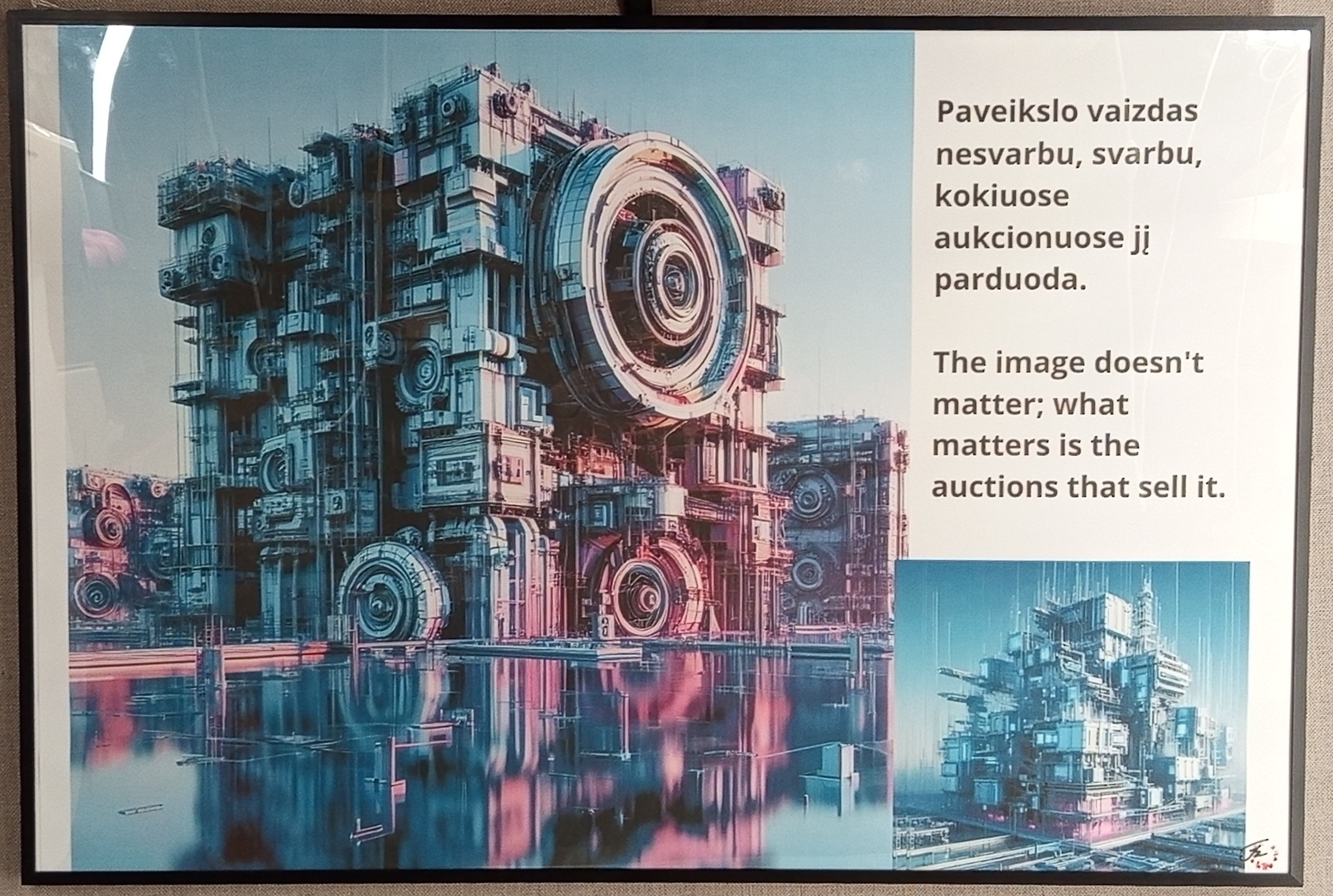 Tomo Lagūnavičiaus kūrinys generuotas naudojant DI įrankį. „Paveikslo vaizdas nesvarbu, svarbu, kokiuose aukcionuose jį parduoda“, 2025 m. |