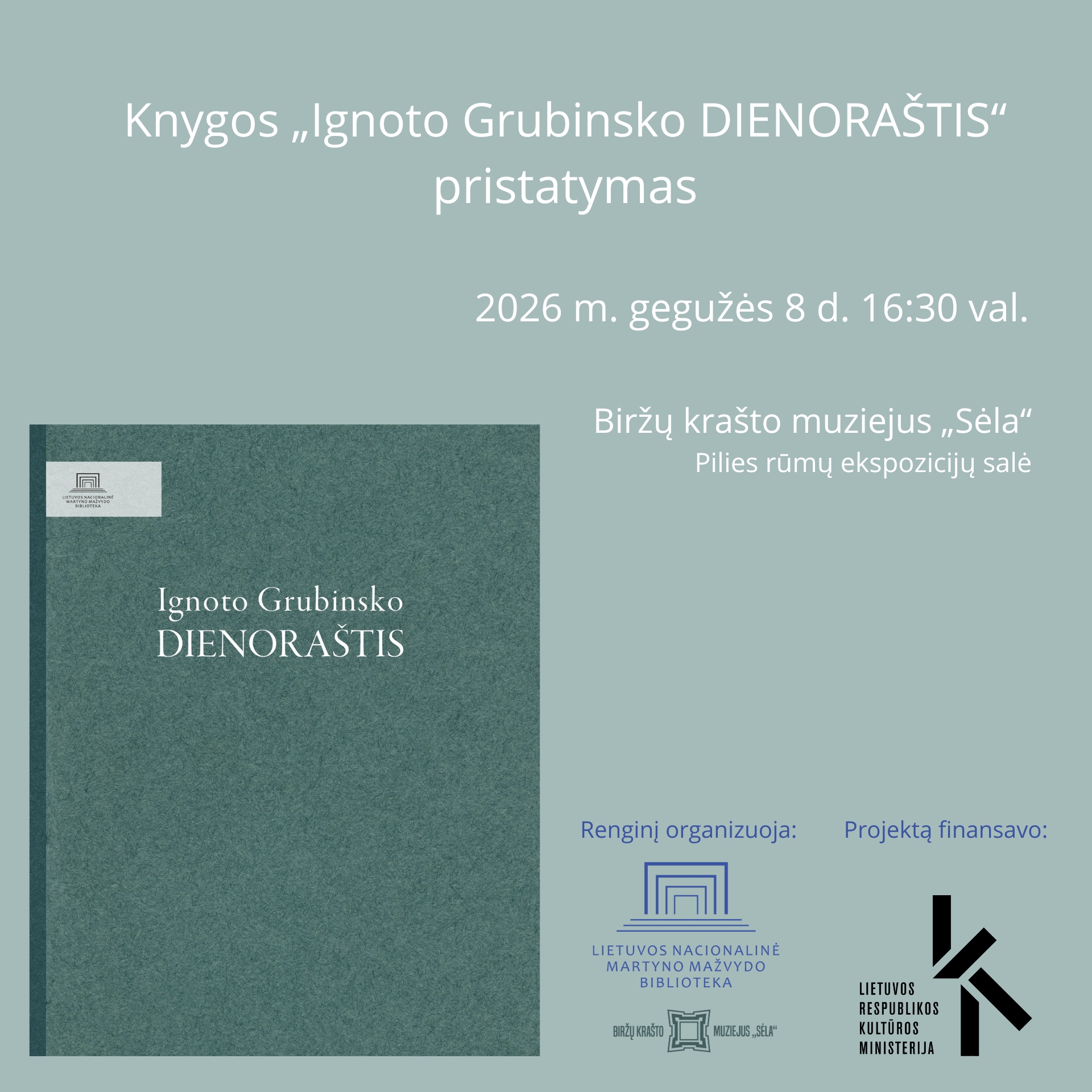 Gegužės 8 d. 16:30 val. kviečiame į Lietuvos nacionalinės Martyno Mažvydo bibliotekos išleistos knygos „Ignoto Grubinsko dienoraštis“ pristatymą Biržų krašto muziejuje „Sėla“.